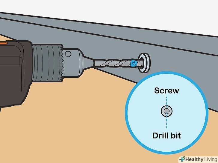 Просвердлите отвір у гвинті. підберіть свердло діаметром менше, ніж гвинт. Просвердлите отвір по центру. Якщо не виходить просвердлити, спробуйте свердло меншого діаметру, наприклад 1,6 мм. свердлите не поспішаючи. Не тисніть на дриль занадто сильно, щоб не зламати свердло. [1]