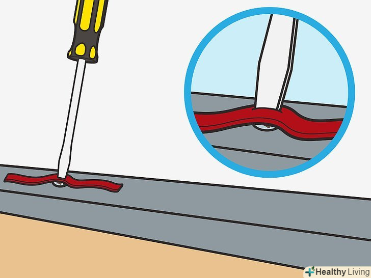 Скористайтеся гумовою стрічкою, щоб посилити зчеплення Викрутки зі шліцом. відріжте довгий шматок гумової стрічки, покладіть його на головку гвинта і спробуйте викрутити гвинт викруткою. За рахунок стрічки викрутка повинна краще зчіплюватися зі шліцом. [6]