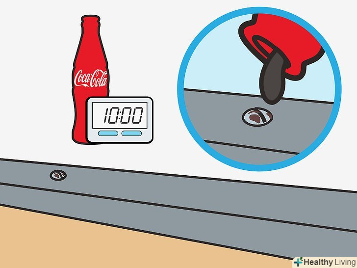 Якщо застряглий гвинт заіржавів, спробуйте капнути на нього трохи розчиняє рідини. іноді іржаві гвинти «приростають» до навколишнього їх матеріалу. Для роз'їдання іржі підійдуть: рідкий ключ, засіб для чищення для духової шафи, газована вода (наприклад, кола або Pepsi) і навіть лимонний сік. Бризніть або капніть речовину на гвинт і почекайте 10 хвилин. Іноді потрібно капнути кілька разів або навіть почекати добу, поки іржа не розчиниться. [7]