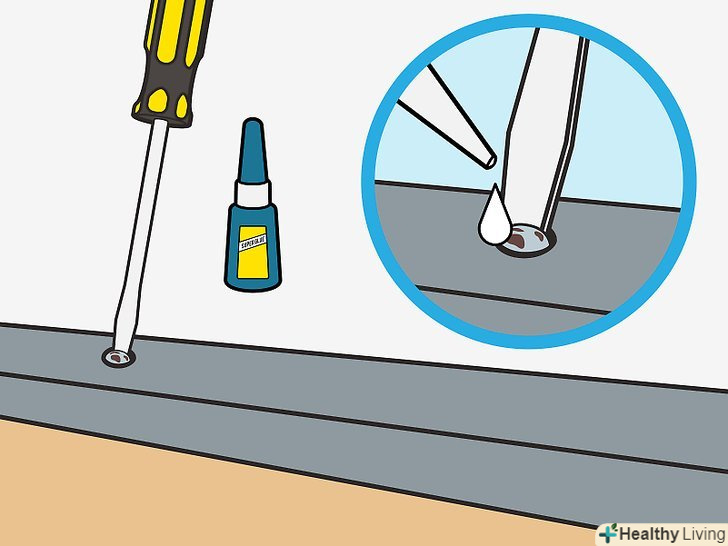 Приклейте наконечник викрутки або свердла до шліца. капніть трохи суперклею на шліц. Вставте в шліц викрутку або свердло. Дочекайтеся висихання клею, потім спробуйте натиснути на гвинт і викрутити його. [8]