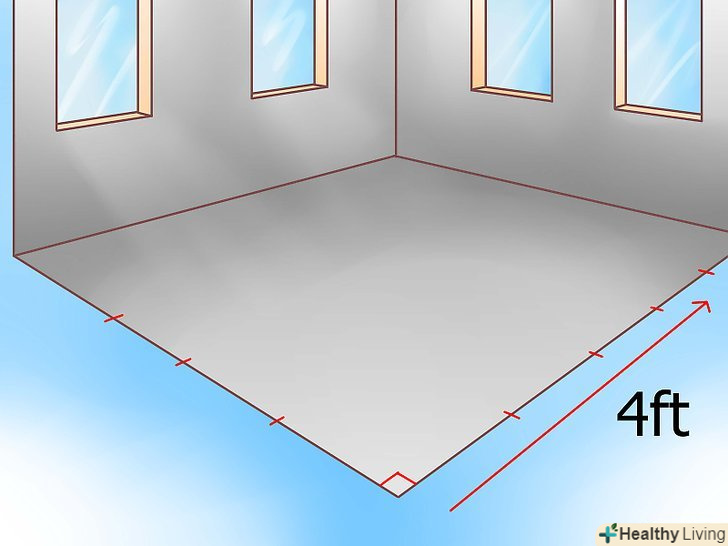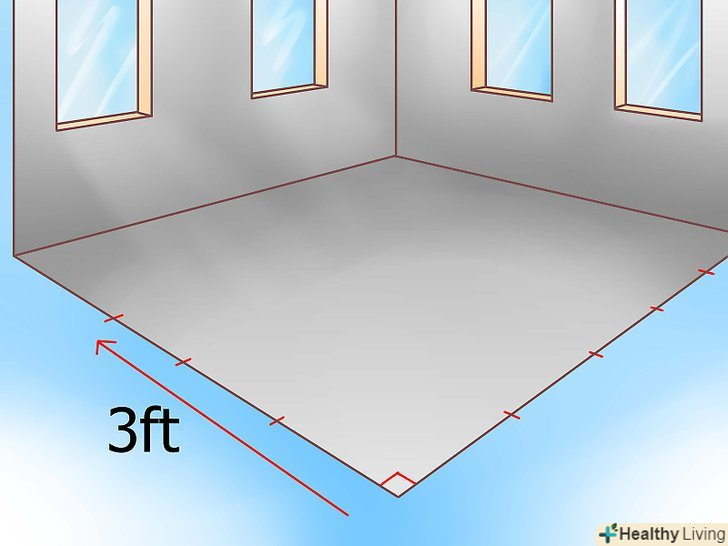 Відміряйте 3 м від одного з кутів приміщення, зробіть замітку. Ви можете вибрати будь-які одиниці виміру, але цифри повинні залишатися колишніми.
