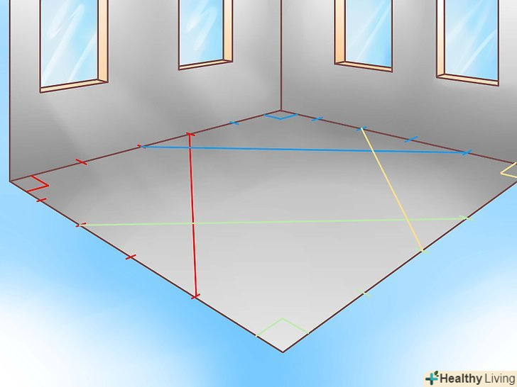 Вимірювання діагоналей між усіма кутами приміщення. Візьміть рулетку і виміряйте довжину діагоналі від одного кута до іншого, розташованого від нього по діагоналі, потім виміряйте відстань між двома залишилися кутами. Якщо уявити собі ці дві лінії, вони повинні утворювати між собою букву "Х".