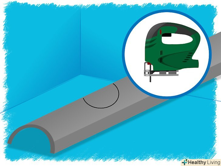Відзначте місця, куди в водостічну трубу буде стікати вода. за допомогою електричного лобзика виконайте у відповідному місці жолоба квадратний отвір.