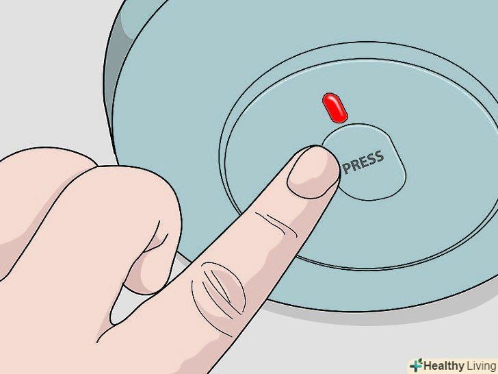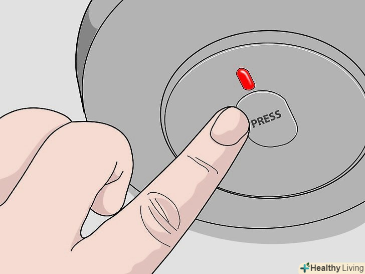 Перезапустіть сигналізацію. більшість сучасних пожежних сигналізацій, що працюють на батарейках, можна перезапустити, на 15 секунд затиснувши кнопку на передній панелі пристрою. Якщо у вас старіша модель, спробуйте відкрутити датчик від стіни або стелі і затиснути кнопку на задній панелі. [2]