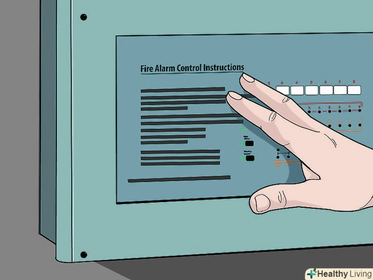 Знайдіть контрольну панель пожежної сигналізації. системи пожежної сигналізації у великих комерційних будівлях зазвичай управляються з одного місця. Ці панелі часто розміщують в щитовій або підсобці.