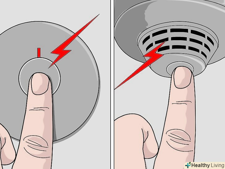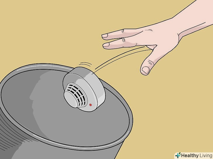 Якщо у вас встановлена сучасна сигналізація, натисніть на кнопку відключення звуку. в останні роки багато компаній додали до своїх аварійних сигналізацій кнопку відключення звуку. Ця кнопка дозволяє тимчасово відключити сигналізацію, щоб ви могли не боячись готувати їжу, курити або виконувати інші дії, через які вона зазвичай спрацьовує. Пошукайте на пристрої кнопку, позначену як "Silence», «Hush» («відключити звук», "відключити режим тривоги") або аналогічним чином. [11]- Багато кнопок відключення звуку об'єднують в собі ще й функцію перевірки сигналізації.