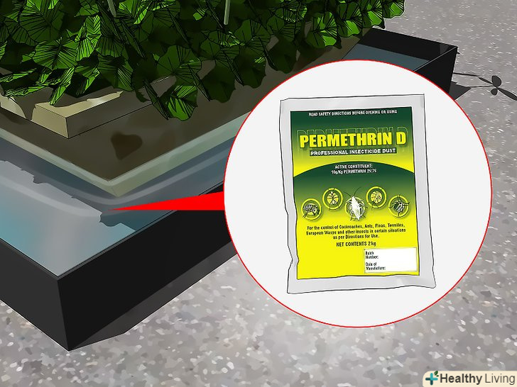 Влаштуйте пастку з приманкою у вигляді води і порошку піретрину. поставте в наповнений водою піддон горщик для кімнатних рослин. Розмістіть пастку в сонячному місці і почекайте, поки оси привчаться пити з неї воду. Після цього додайте у воду порошок будь-якого піретрину, наприклад перметрину (цей натуральний інсектицид виділяють з хризантем). Приготуйте з порошку пастоподібну масу і додайте її в воду.- Даний спосіб найкраще використовувати на початку літа.