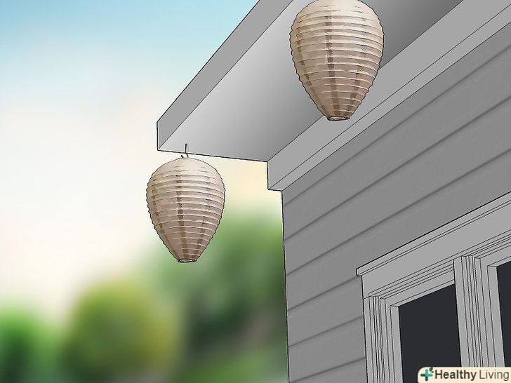Підвісьте фальшиве гніздо в межах 50 метрів від кожного осиного гнізда. з початком теплого сезону можна розмістити навколо будинку фальшиві осині гнізда, щоб відлякати нових ос. Однак цей метод діє не завжди і не годиться в розпал літа.- Фальшиві осині гнізда можна придбати в магазині господарських товарів або замовити через Інтернет. Можна також використовувати паперові ліхтарі або пакети з коричневого паперу.