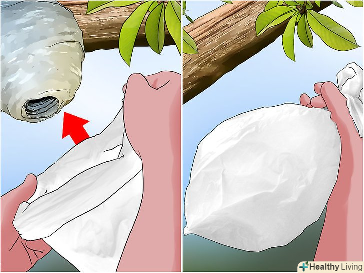 Зніміть і запечатайте гніздо восени. дочекайтеся нічних заморозків і постарайтеся якомога тихіше наблизитися до гнізда в темний час доби. Швидко накиньте на гніздо пластиковий пакет (постарайтеся як і раніше виробляти якомога менше шуму). Підтягніть пакет до гілки, на якій висить гніздо, зав'яжіть його і зріжте гілку або відламайте її від дерева. Після цього приблизно на один день покладіть пакет з гніздом в морозильну камеру або у відро з водою, щоб заморозити або втопити ос. [11]- Даний метод можна використовувати лише в другій половині жовтня або після настання перших заморозків, коли температура хоча б на 4 години опускається нижче -4°C.