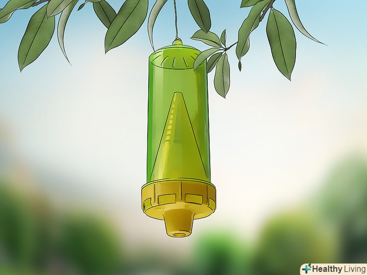 Прикріпіть до жердини або стовбура дерева біля осиного гнізда пастку з приманкою. оси будуть потрапляти в закриту пастку і гинути під дією інсектициду. Відрегулюйте шурупи на вхідному отворі кожної пастки. Розвісьте пастки на жердині або дереві неподалік від осиного гнізда. Надійно прибийте їх до жердини або стовбура дерева. [8]- Пастки з приманкою для ос можна придбати в магазині господарських товарів або замовити через Інтернет.