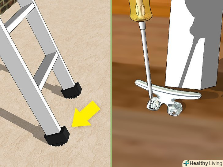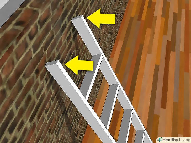 - Якщо ви опираєтеся сходи об дах або водостік, прив'яжіть її до димової труби, до водостоку або до роб-болтів, прикрученим до фасції. В іншому випадку вітер може перевернути сходи.