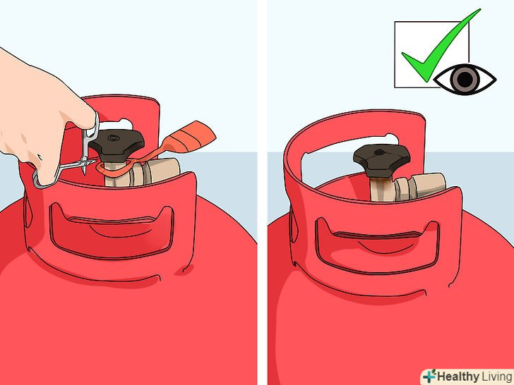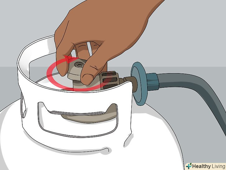 Перекривайте клапан, коли не користуєтеся балоном. поверніть клапан за годинниковою стрілкою до упору. Так ви уникнете можливий витік газу з балона. [9]- Якщо ви відчуваєте запах тухлих яєць, можливо, з балона витікає газ.