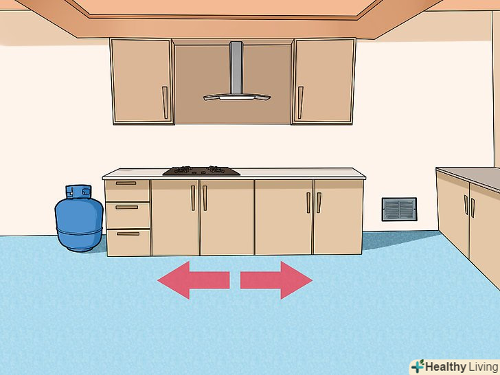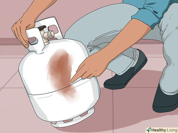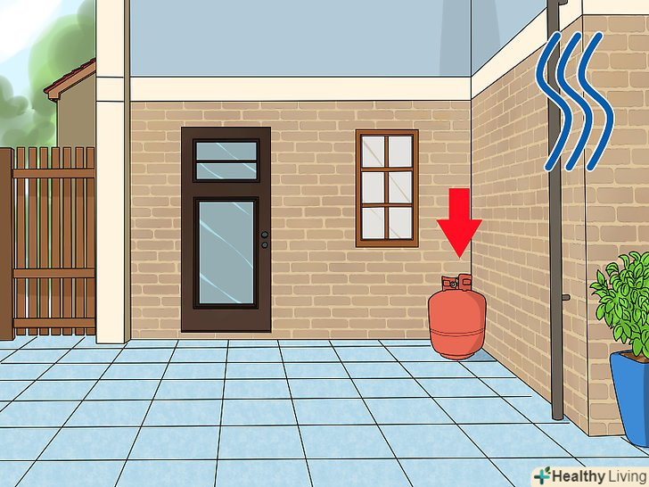 Не залишайте балон біля вікон і вентиляційних отворів. пошукайте, чи немає поруч з газовим балоном вентиляційних решіток. Пропан важчий за повітря, тому він опуститься нижче і може проникнути у вентиляційні решітки та вікна підвалу. Не залишайте балон в такому місці, де при витоку з балона газ може легко проникнути в будинок і зіпсувати повітря. [7]- Ніколи не залишайте газовий балон біля кондиціонерів, радіаторів або вентиляційних систем з рекуперацією тепла, оскільки вони можуть втягнути газ в будинок.