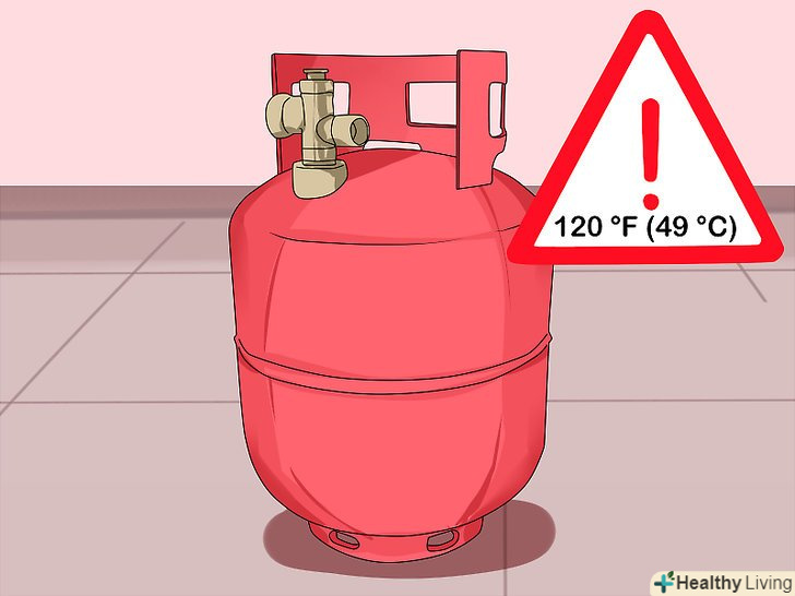 Не зберігайте балон при температурі вище 49 °C. з підвищенням температури тиск в балоні почне зростати. Не залишайте балон на сонці влітку. Замість цього знайдіть затінений ділянку і залиште його там. [4]- На газовому балоні є Випускний клапан, за допомогою якого можна зменшити тиск в разі занадто високої температури. Накопичений тиск почне витікати і розсіюватися в повітрі. Переконайтеся, що поруч з балоном немає джерел вогню, щоб газ не запалився.
