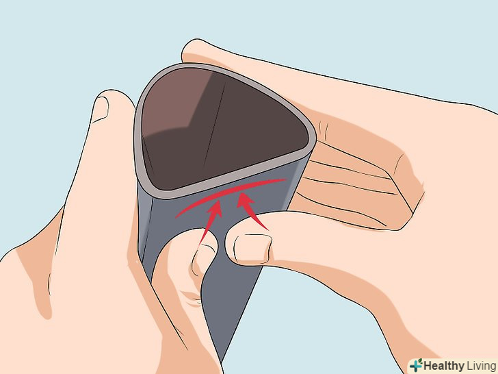 Сплющіть трубку з одного боку. Натисніть пальцями на одну сторону трубки, щоб вона сплющилася. Вирівняйте одну сторону трубки так, щоб її можна було покласти плоскою поверхнею на стіл. [6]