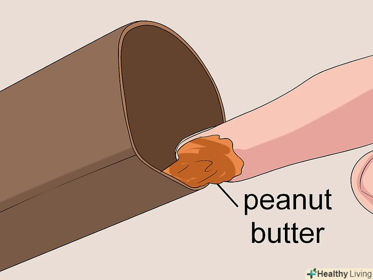 Покладіть в трубку приманку. розмістіть в одному кінці трубки приманку. Щоб заманити мишу, досить буде невеликої кількості арахісової пасти, декількох шматочків крекеру або скибочки бекону. Зручно використовувати арахісову пасту, так як її можна наліпити на внутрішню поверхню трубки.