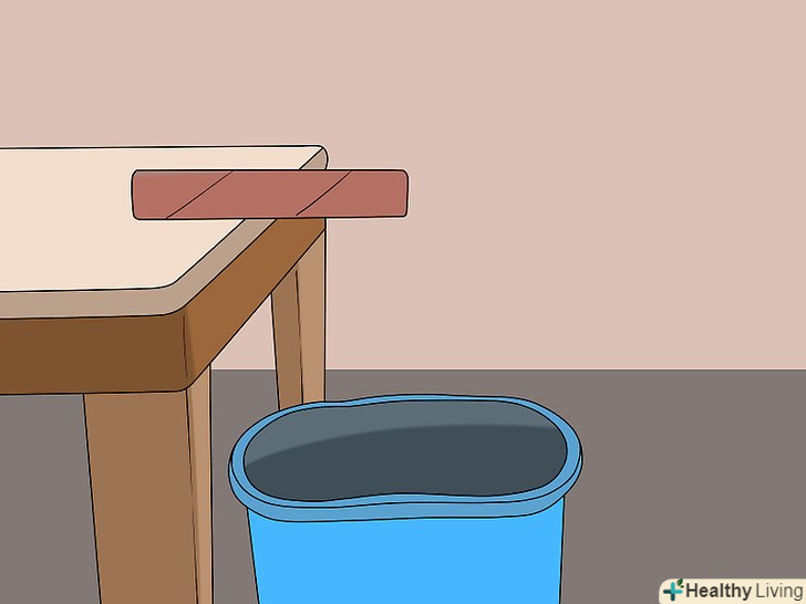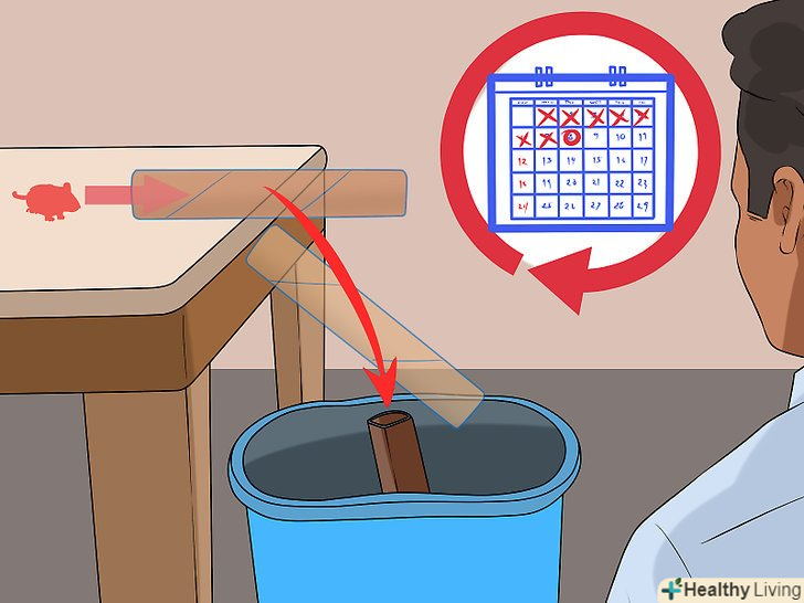 Поставте відро під трубкою. розмістіть ємність прямо під виступаючим над столом кінцем трубки з приманкою. Коли миша підбереться до приманки, трубка під її вагою впаде зі столу в відро. [8]
