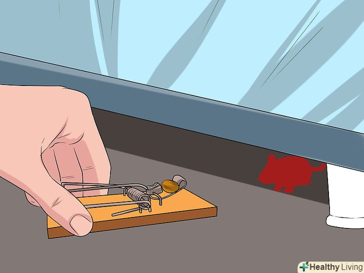 Придбайте кілька пасток. у продажу є безліч видів мишоловок, в тому числі стандартні пастки з пружиною, а також електричні і клейкі пастки. Хоча в них застосовуються різні способи знищення мишей, принцип їх дії приблизно однаковий. Такі пастки можна придбати в більшості магазинів господарських товарів або замовити через Інтернет. Навіть якщо в будинку завелася одна миша, краще придбати кілька пасток, до того ж миші швидко розмножуються. [1]- Не використовуйте отруту. Миша з'їсть отруту і помре в прихованому місці. Крім того, отрутою можуть отруїтися діти і Домашні тварини.