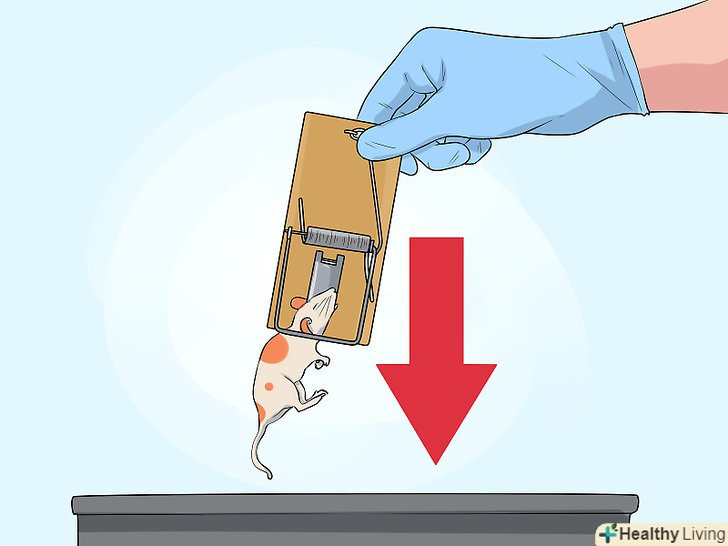 Позбавтеся від спійманої миші. одягніть захисні рукавички (можна також використовувати марлеву пов'язку). Викиньте одноразові мишоловки у вуличний сміттєвий контейнер, щоб уникнути неприємного запаху в будинку. [5]- Якщо ви обмежені в засобах, мишоловки можна використовувати повторно. Одягніть одноразові рукавички і ретельно вимийте мишоловки водою з милом. Викиньте використані рукавички після того, як заново встановіть мишоловки.