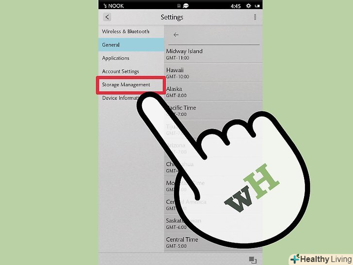 Вставте картку Micro-SD для розширення обсягу доступної пам'яті.якщо на вашому планшеті закінчується вільне місце, то ви можете видалити старі невикористовувані файли або розширити сховище даних. В останньому випадку вам знадобиться картка пам'яті Micro-SD, яку можна придбати в будь-якому магазині електронних товарів.- Для розширення пам'яті просто відкрийте слот в лівій нижній частині планшета Nook HD і вставте картку Micro-SD. Пристроєм підтримуються картки з об'ємом пам'яті до 64 ГБ.[4]