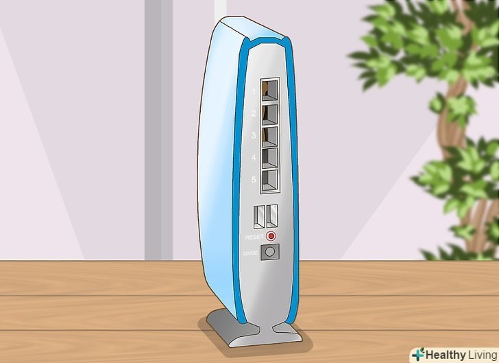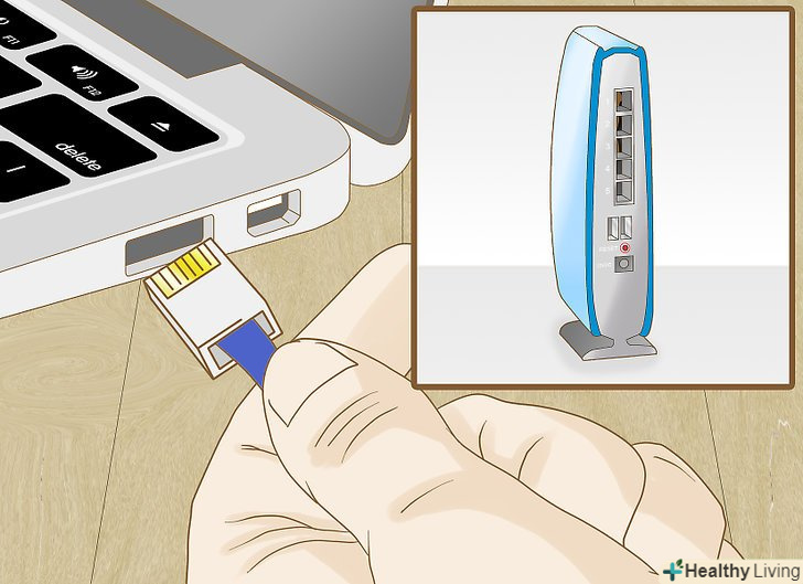 Підключіть комп'ютер до маршрутизатора або модему.один кінець Ethernet-кабелю вставте у вільний порт маршрутизатора або модему, а інший — в Ethernet-порт комп'ютера.- На обох кінцях Ethernet-кабелю знаходяться однакові штекери, тому немає ніякої різниці, який кінець кабелю підключити до комп'ютера або маршрутизатора.