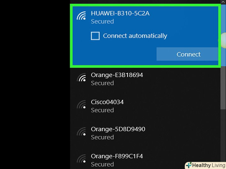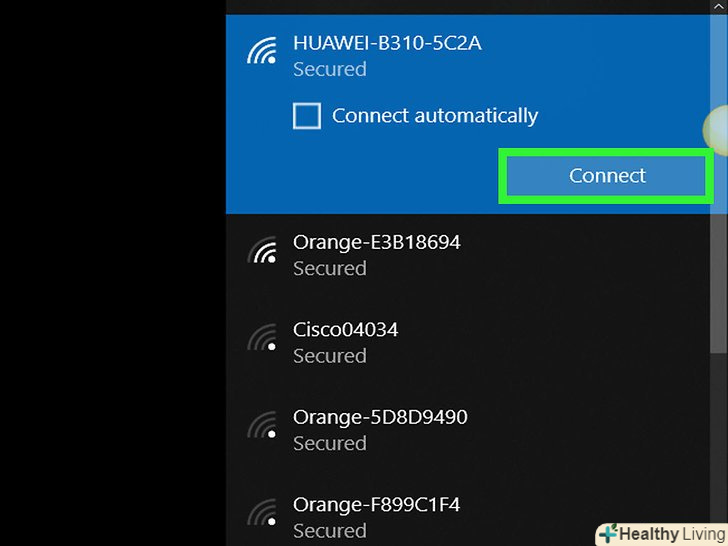 Виберіть ім'я бездротової мережі. натисніть на назву бездротової мережі, до якої хочете підключитися. Під ім'ям з'явиться опція.- Якщо назви потрібної мережі в списку немає, розмістіть комп'ютер ближче до маршрутизатора / модему.