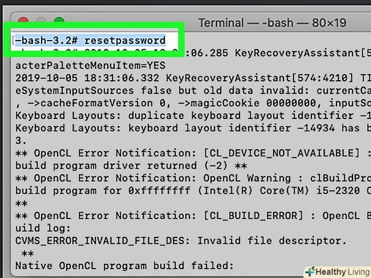 Введіть команду скидання пароля. Введіть resetpassword, а потім натисніть ⏎ Return — у фоновому режимі відкриється вікно скидання пароля.