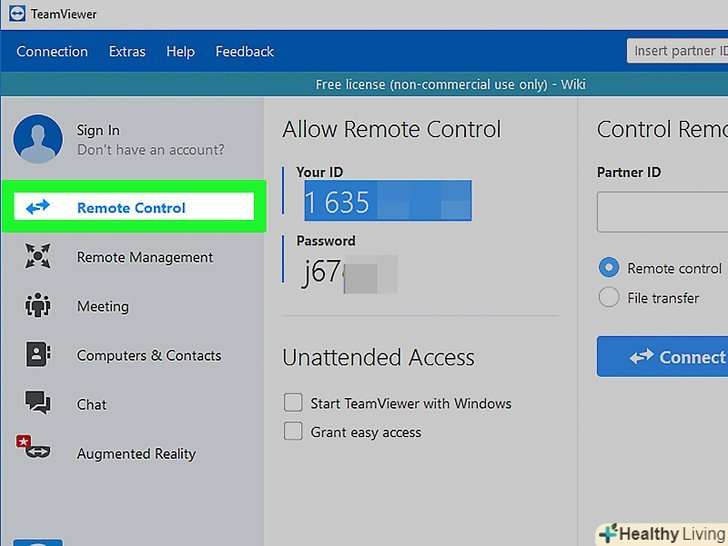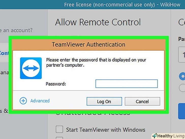 Підключіться до віддаленого комп'ютера зі свого комп'ютера.введіть ідентифікатор віддаленого комп'ютера в текстовому полі "партнерський ідентифікатор«, натисніть» Підключитися«, введіть пароль і натисніть»Увійти". Так ви отримаєте доступ до віддаленого комп'ютера.- На віддаленому комп'ютері можна працювати як на своєму, тобто переміщати файли і папки, вимикати комп'ютер і так далі.