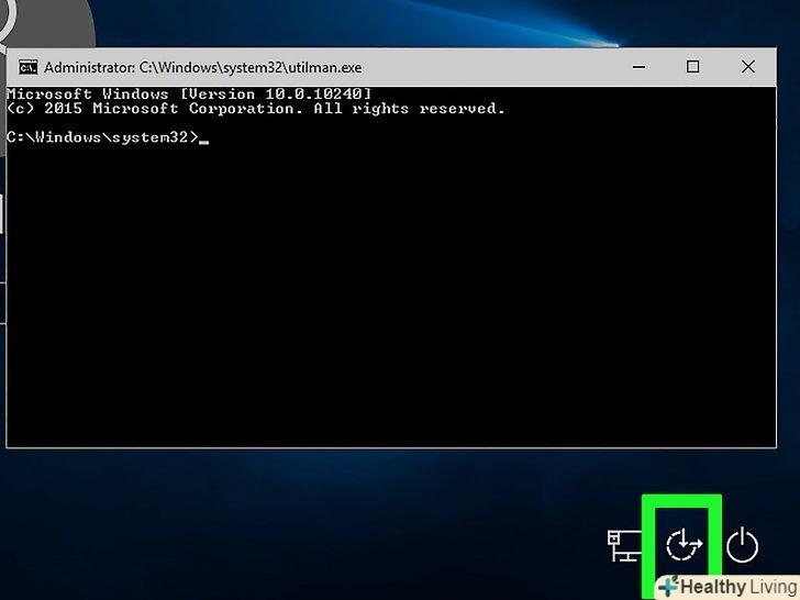 Відкрийте командний рядок на екрані входу в систему.для цього клацніть по значку Диспетчера утиліт, який виглядає як циферблат і знаходиться в нижній лівій частині екрана.- Якщо ви не замінили значок Диспетчера утиліт командним рядком, відкриється Диспетчер утиліт.