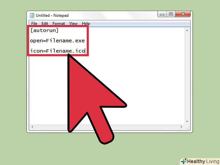 Створіть файл Autorun.inf. це текстовий файл, який автоматично визначить диск, вставлений в оптичний привід. Введіть в блокноті наступне: [autorun] open=Filename.exeicon=Filename.ico