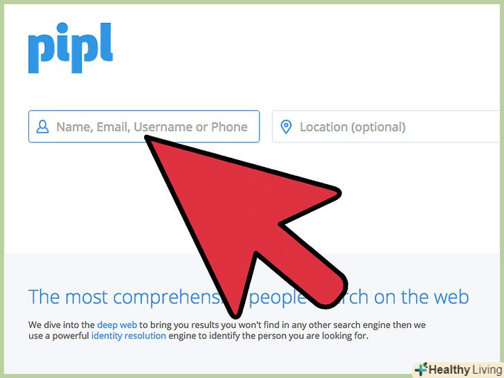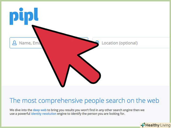 Використовуйте пошукові сервіси по людях.є кілька пошукових систем, що фокусуються на отриманні інформації про людину з публічної інформації в соціальних мережах і його онлайн активності. Ці пошукові системи часто безкоштовні, але більшість з них пропонує опцію платного розширеного пошуку. Використання різних сервісів допоможе вам намалювати більш цілісну картину. Поширені варіанти це:[1]- Pipl - цей сайт безкоштовно надасть вам інформацію з соціальних мереж, вік і місце проживання. Вам потрібно просто ввести ім'я, але ви можете звузити пошук, ввівши місце проживання. Майте на увазі, що поширене ім'я в підсумку приведе вас до безлічі результатів.