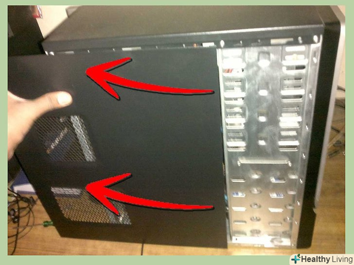 Розкрийте корпус ПК.з плином часу пил може забити т.зв. "кулери" - охолоджуючі ПК вентилятори, через що той почне грітися і працювати гірше. Щоб позбутися від пилу, вам буде потрібно розкрити корпус ПК.- Є різні типи корпусів, які відкриваються по-різному. Часом потрібні Викрутки, часом можна обійтися руками, десь болти, а десь-засувки. Якщо ви не можете зрозуміти, як же саме треба відкривати корпус - пошукайте інструкцію.