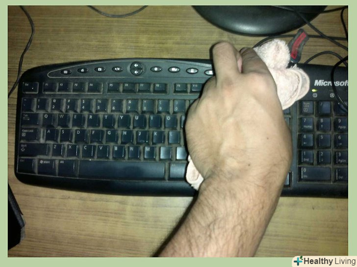 - Почистіть клавіатуру.спершу варто перевернути клавіатуру і потрясти її, щоб всі крихти тощо випало з неї. Якщо ви чистите лаптоп-трусіть ніжно, дуже ніжно, щоб нічого ненароком не пошкодити. Після того, як витрусіть всі крихти, які зможете, знову озбройтеся балончиком зі стисненим повітрям, продуйте клавіатуру і потрясіть їй ще раз. Потім протріть клавіші засобом для очищення поверхонь.