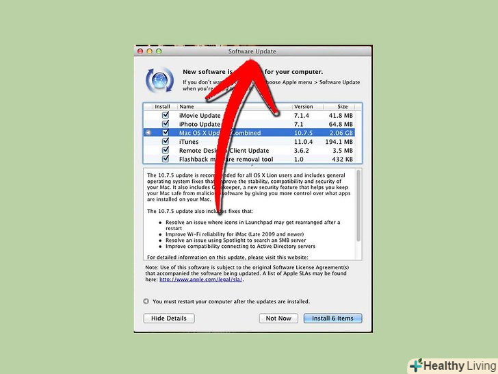 - Mac: відкрийте меню, зайдіть в Налаштування System Preferences і з меню View виберіть Software Update. З'явиться список всіх доступних оновлень. Перед тим, як продовжувати, Ви можете вибрати ті чи інші оновлення.