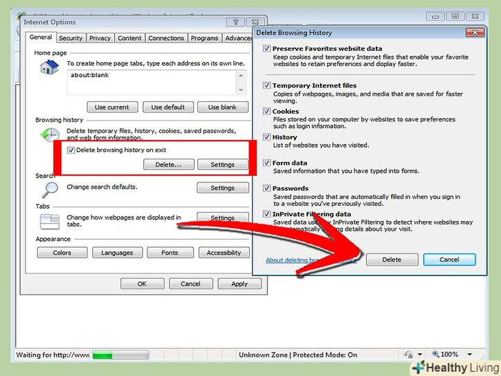 - Видаляйте інтернет-файли. коли ви працюєте в Інтернеті, ваш браузер збирає безліч файлів, які, з часом, починають певною мірою погіршувати роботу системи, особливо на старих і повільних ПК. Найпростіше видаляти такі файли через сам браузер. Наприклад, користувачі Internet Explorer, що працюють в Windows, можуть видалити такі файли, Зайшовши в контрольну панель, вибравши меню " Internet Options "і натиснувши на кнопку" Видалити", що знаходиться на вкладці" General "під заголовком"Browsing History".
