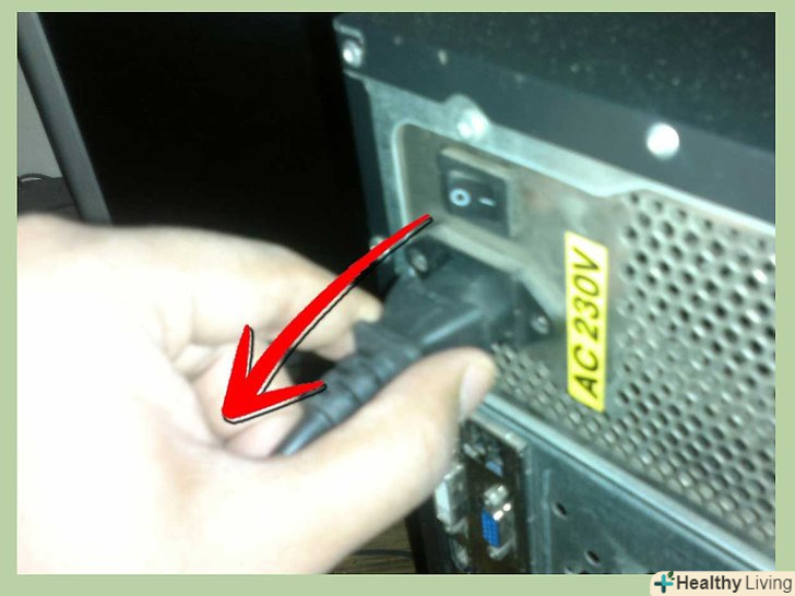 Вимкніть ПК.і не просто вимкніть, а ще й вимкніть його від електрики, причому повністю, включаючи товстий чорний шнур, що йде до блоку живлення на задній панелі. Якщо у вас лаптоп, то вимкніть його, вимкніть всі дроти електроживлення і витягніть блок живлення.- Щоб уникнути подряпин, перед тим, як почнете витягувати блок живлення лаптопа, покладіть його на рушник екраном вниз.