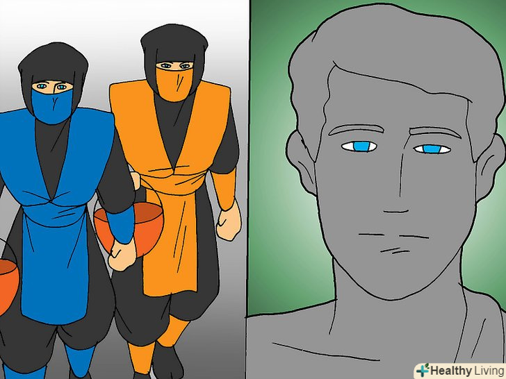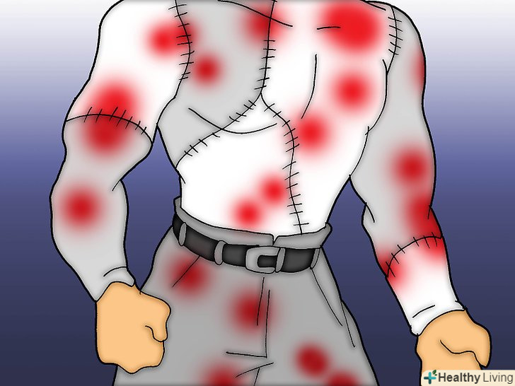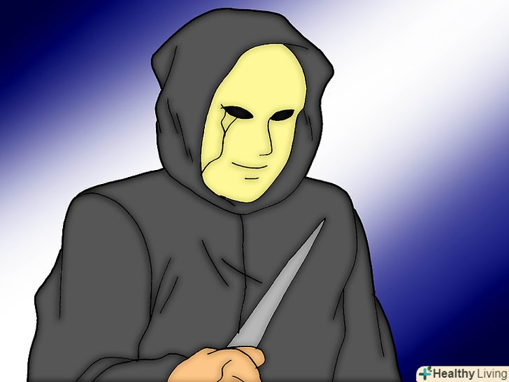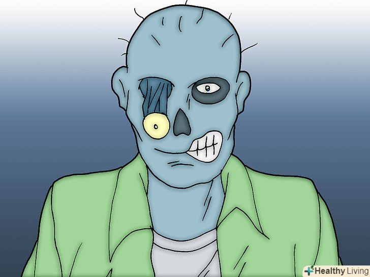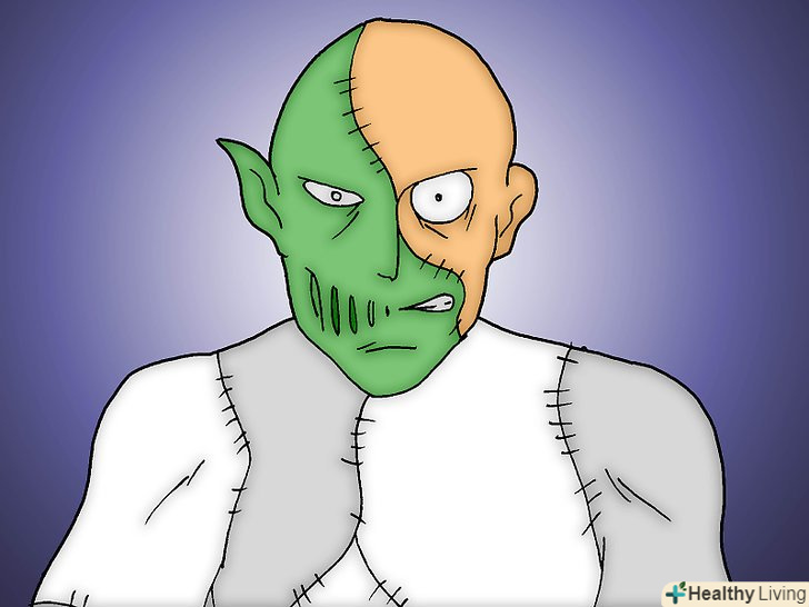 Одягніть страшну маску (наприклад: маску монстра, але не якогось відомого монстра) і моторошний костюм. Зауважте, що білі костюми підійдуть найкраще, оскільки костюм білого кольору знадобиться в наступному кроці.