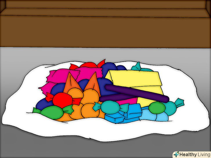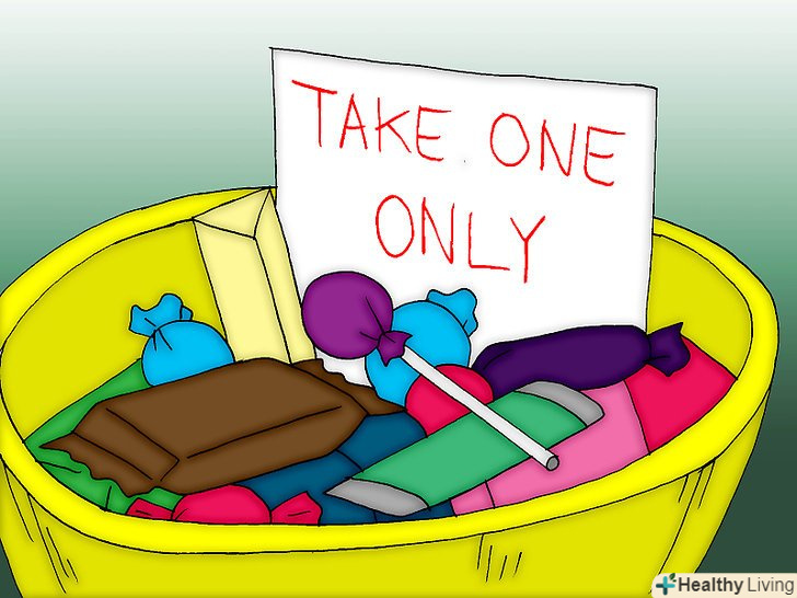 Залиште миску з цукерками на вулиці перед дверима. біля неї поставте записку з написом: «візьміть тільки одну».- Якщо ви ховаєтеся за дверима, переконайтеся, що ви не скинете миску, якщо відкриєте двері.