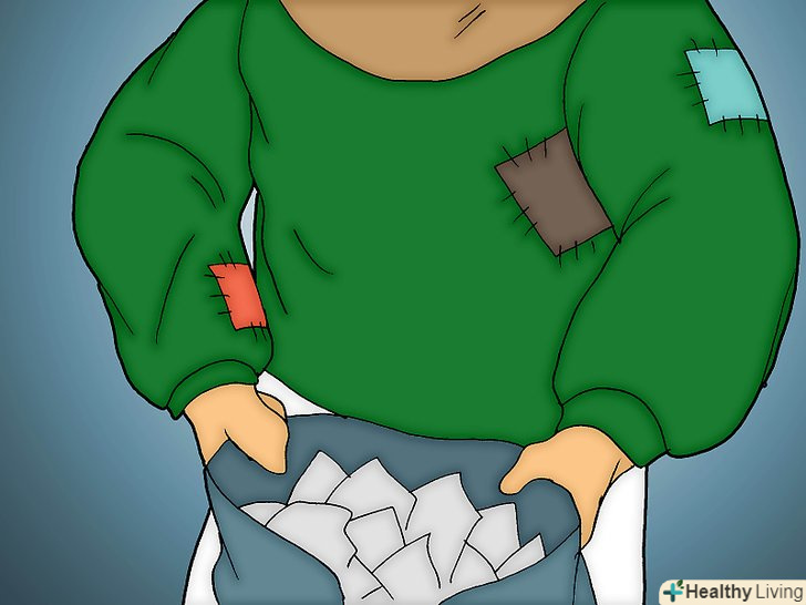 - Зіпріться об стіну, як ніби ви кульгавий. Візьміть трохи газет або сіна, щоб вони стирчали з ваших штанів або маски, так щоб ви виглядали як саморобна набита декорація. Носіть сонцезахисні окуляри на вершині маски, щоб мати хороший огляд, і люди не помітили моргання та живих очей.