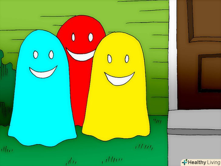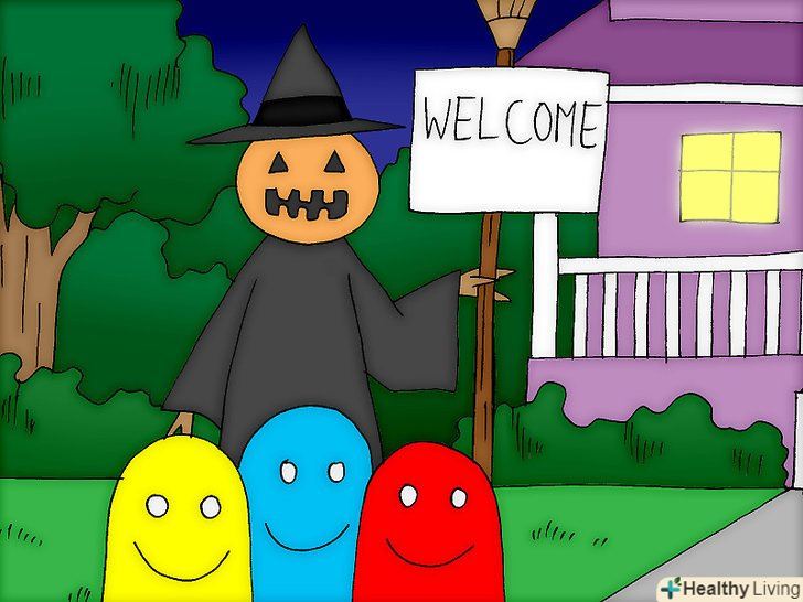 Прикрасьте ваш будинок, мило оформивши його до Хеллоуїну. таким чином, діти нічого не запідозрять. Використовуйте усміхнених привидів, милих відьмочок, веселих/танцюючих скелетів і т.д. інший варіант - це зробити ваш будинок дійсно страшним, настільки, щоб це могло налякати дітей. Для страхітливого ефекту, використовуйте чорне освітлення, фальшиві кістки, несправжню кров (можна використовувати як кетчуп, так і штучну кров), і т. д.