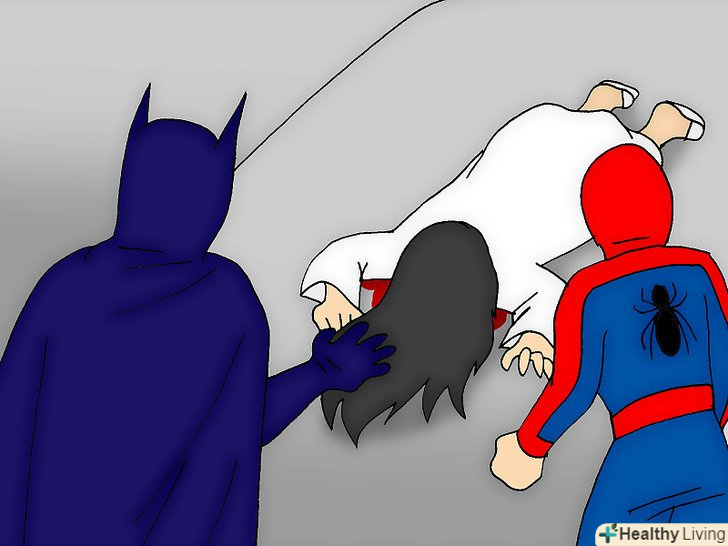 Прикиньтеся, як ніби ви вбиваєте вашого друга, в той час як він буде розбризкувати несправжню кров або кетчуп. зробіть це якомога реалістичніше! Потім ваш друг повинен впасти (постарайтеся зімітувати падіння, на тротуар боляче падати) і продовжувати розбризкувати кров або кетчуп вже на підлозі. Важливо, щоб було не видно пакет.