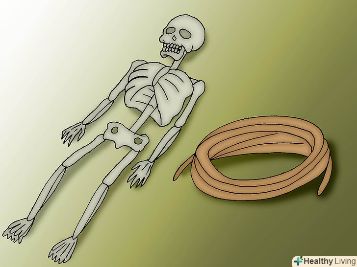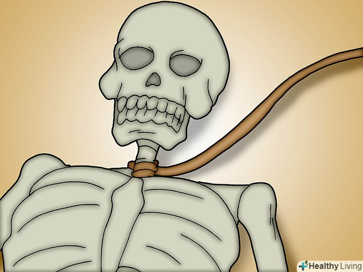 Відміряйте 2 або 3 метри мотузки. Прив'яжіть скелет десь у кімнаті так, щоб він висів.
