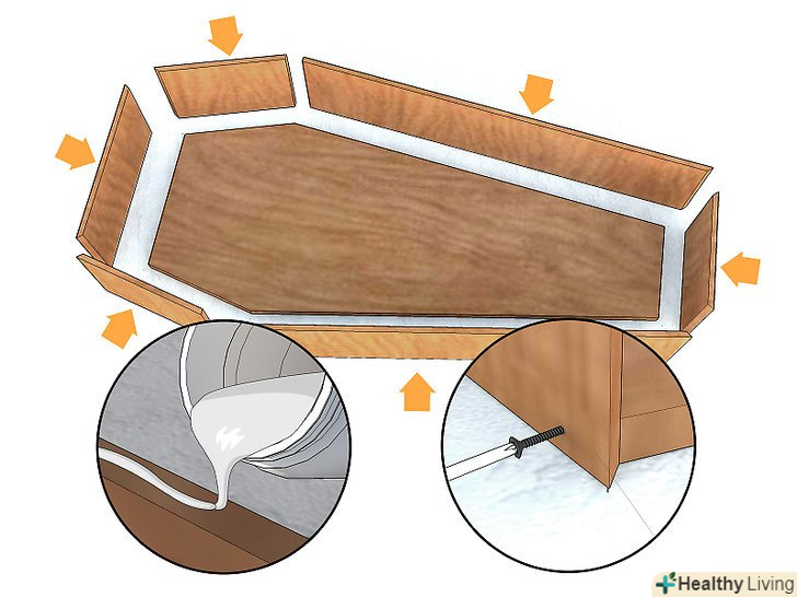 Зберіть труну. тепер прийшов час зібрати все разом.- Підгоніть сторони труни разом і до основи. Просто підставте сторони, щоб переконатися, що вони підходять один до одного, перш ніж почати склеювати шматки.