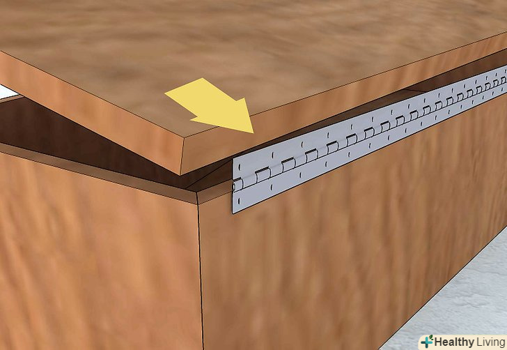 Прикріпіть кришку труни. якщо ви використовуєте труну в похоронних цілях, Ви можете просто прибити кришку. Або прикріпіть петлі до однієї з довгих країв труни і протягніть стрижень до кришки.