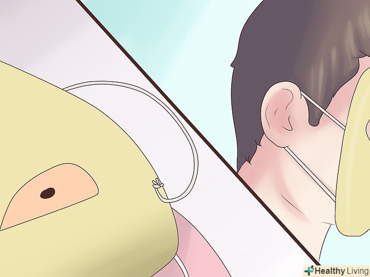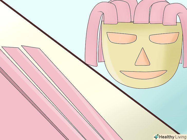 Візьміть гумку, щоб зробити пов'язку. щоб носити маску на голові, потрібно виконати маленькі дірочки з двох країв маски, протягнути в них гумку, за допомогою якої маска буде триматися ззаду на голові, і зав'язати по сторонам. Це буде імпровізована пов'язка, за допомогою якої Ви будете носити маску. Візьміть гумку, щоб зробити пов'язку. щоб носити маску на голові, потрібно виконати маленькі дірочки з двох країв маски, протягнути в них гумку, за допомогою якої маска буде триматися ззаду на голові, і зав'язати по сторонам. Це буде імпровізована пов'язка, за допомогою якої Ви будете носити маску.- Крім того, можна приклеїти коротку паличку (наприклад, від морозива) до низу маски, щоб зробити ручку, за допомогою якої можна тримати маску перед обличчям.