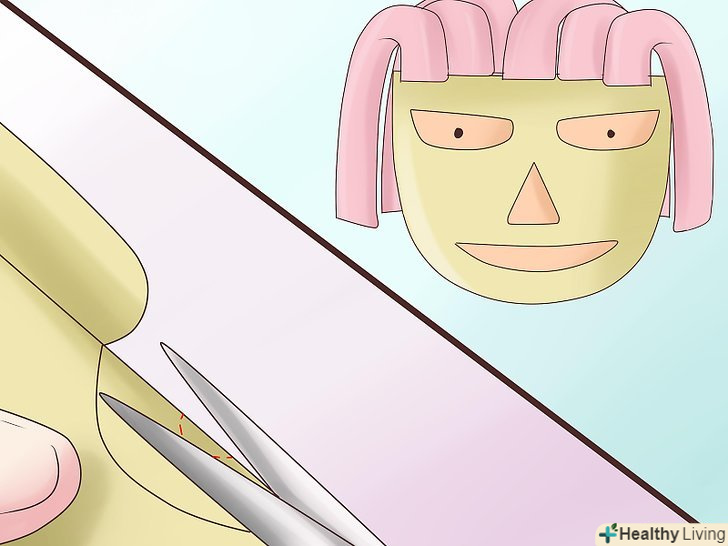 Зробіть в масці отвори для очей. виконайте маленькі дірочки в центрі кожного ока, щоб ви могли бачити в масці. Це можна зробити, акуратно склавши маску в місцях кожного ока і вирізавши ножицями маленькі півкола в центрі кожного ока, а якщо маска не складена, просто виріжте маленькі кружечки. Або скористайтеся ручним дироколом, якщо у вас він є. Зробіть в масці отвори для очей. виконайте маленькі дірочки в центрі кожного ока, щоб ви могли бачити в масці. Це можна зробити, акуратно склавши маску в місцях кожного ока і вирізавши ножицями маленькі півкола в центрі кожного ока, а якщо маска не складена, просто виріжте маленькі кружечки. Або скористайтеся ручним дироколом, якщо у вас він є.