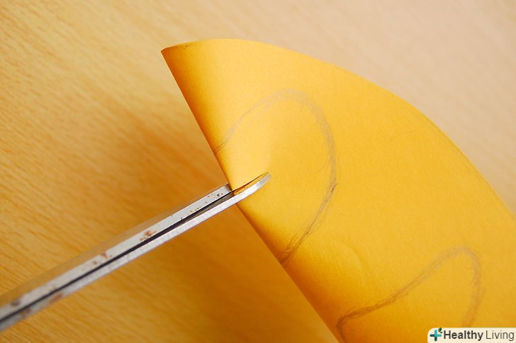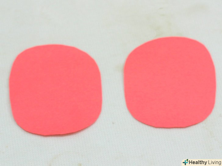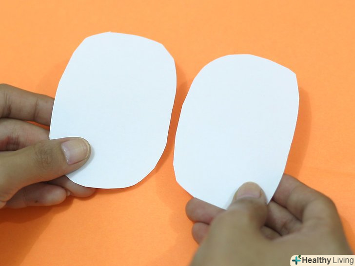 Виріжте два менших овалу з другого аркуша картону. розріжте інший аркуш картону навпіл уздовж його згину. Потім виріжте два невеликих овалу з отриманих листів по вищеописаному методу: складіть листок навпіл, а потім зріжте куточки навпроти згину, закругляя їх. Виріжте два менших овалу з другого аркуша картону. розріжте інший аркуш картону навпіл уздовж його згину. Потім виріжте два невеликих овалу з отриманих листів по вищеописаному методу: складіть листок навпіл, а потім зріжте куточки навпроти згину, закругляя їх.- Отримані овали не є самі по собі очима – скоріше, це обриси очей. Тому вони повинні бути трохи більше, ніж очі, які ви хочете.