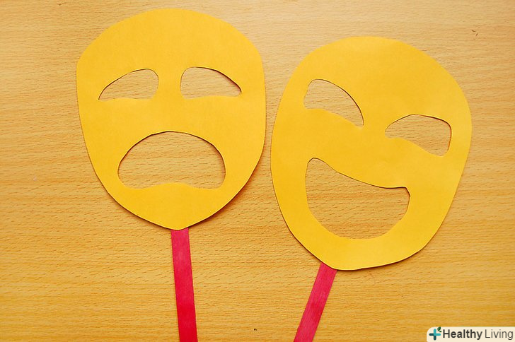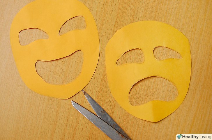 Виріжте з листа кольорового картону щитоподібний обрис. дані інструкції покажуть, як зробити маску, що походить на маски «комедії» і «трагедії», які символізують концепцію драми. Хоча вирази на кожній з масок різні, загальна їх форма однакова-закруглений щит або шолом. Виріжте подібну форму з Вашого листа. Використовуйте весь картон, тому що маска повинна бути достатньо великою, щоб сховати все обличчя. Виріжте з листа кольорового картону щитоподібний обрис. дані інструкції покажуть, як зробити маску, що походить на маски «комедії» і «трагедії», які символізують концепцію драми. Хоча вирази на кожній з масок різні, загальна їх форма однакова-закруглений щит або шолом. Виріжте подібну форму з Вашого листа. Використовуйте весь картон, тому що маска повинна бути достатньо великою, щоб сховати все обличчя.