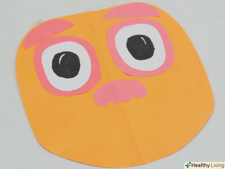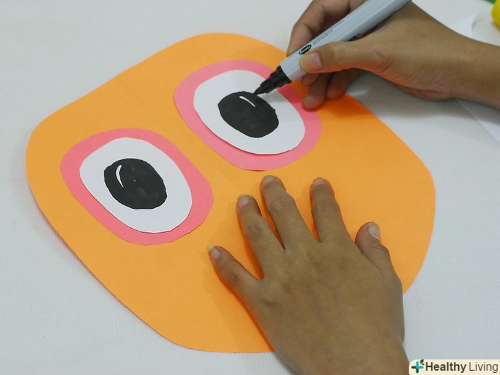 Виріжте пару тонких деталей для брів. Візьміть залишки кольорового картону, використовуваного для обрису очей, щоб вирізати з нього брови. Приклейте їх над очима. Тут у вас є маса варіантів-можна вирізати тоненькі брови, товсті, вигнуті і навіть зигзагоподібні. Виріжте пару тонких деталей для брів. Візьміть залишки кольорового картону, використовуваного для обрису очей, щоб вирізати з нього брови. Приклейте їх над очима. Тут у вас є маса варіантів-можна вирізати тоненькі брови, товсті, вигнуті і навіть зигзагоподібні.