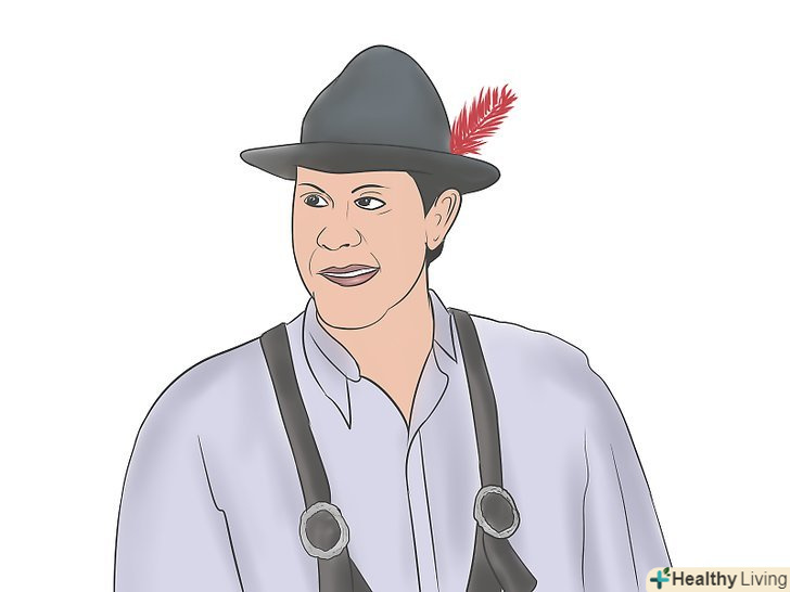 Накиньте пару штанів «леденхозен». «Леденхозен» - типові традиційні шкіряні бриджі, оригінальна річ може бути досить дорогою. Якщо ви не можете знайти справжню річ, створіть подібний вигляд, вибравши пару коричневих, чорних або темно-зелених штанів майже до колін. Докер-стиль згодиться найкраще, і на брюках не повинно бути занадто багато кишень. Накиньте пару штанів «леденхозен». «Леденхозен» - типові традиційні шкіряні бриджі, оригінальна річ може бути досить дорогою. Якщо ви не можете знайти справжню річ, створіть подібний вигляд, вибравши пару коричневих, чорних або темно-зелених штанів майже до колін. Докер-стиль згодиться найкраще, і на брюках не повинно бути занадто багато кишень.